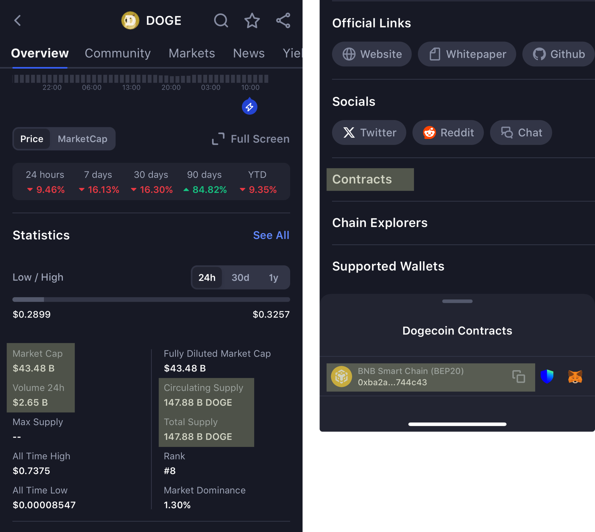 It's important to get the correct address for a token that you want to buy. The wrong address could lead to some jerk taking all your money. There is not just one $DOGE coin. Naught crypto bros have created other versions to fool you and then sell off everything before you can say "oh shit, wait…!"
