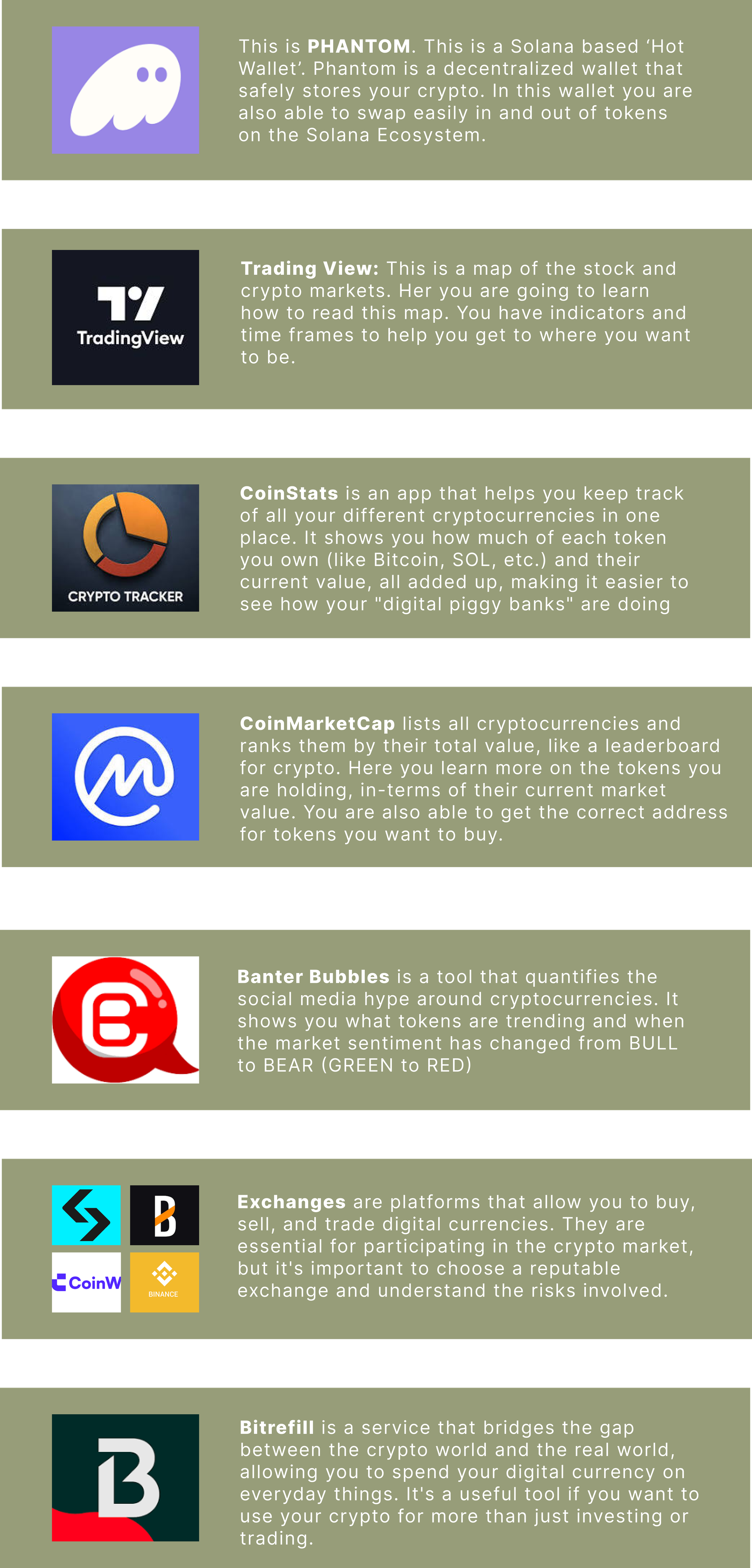 These apps help you trade, store your earnings, keep track of your portfolio and also get more information of what you are trading or buying. You don't have to download all of them or if you already have some apps that you use and are familiar with keep using those. Also, be aware that in different countries, different apps work better with your bank or legislation.