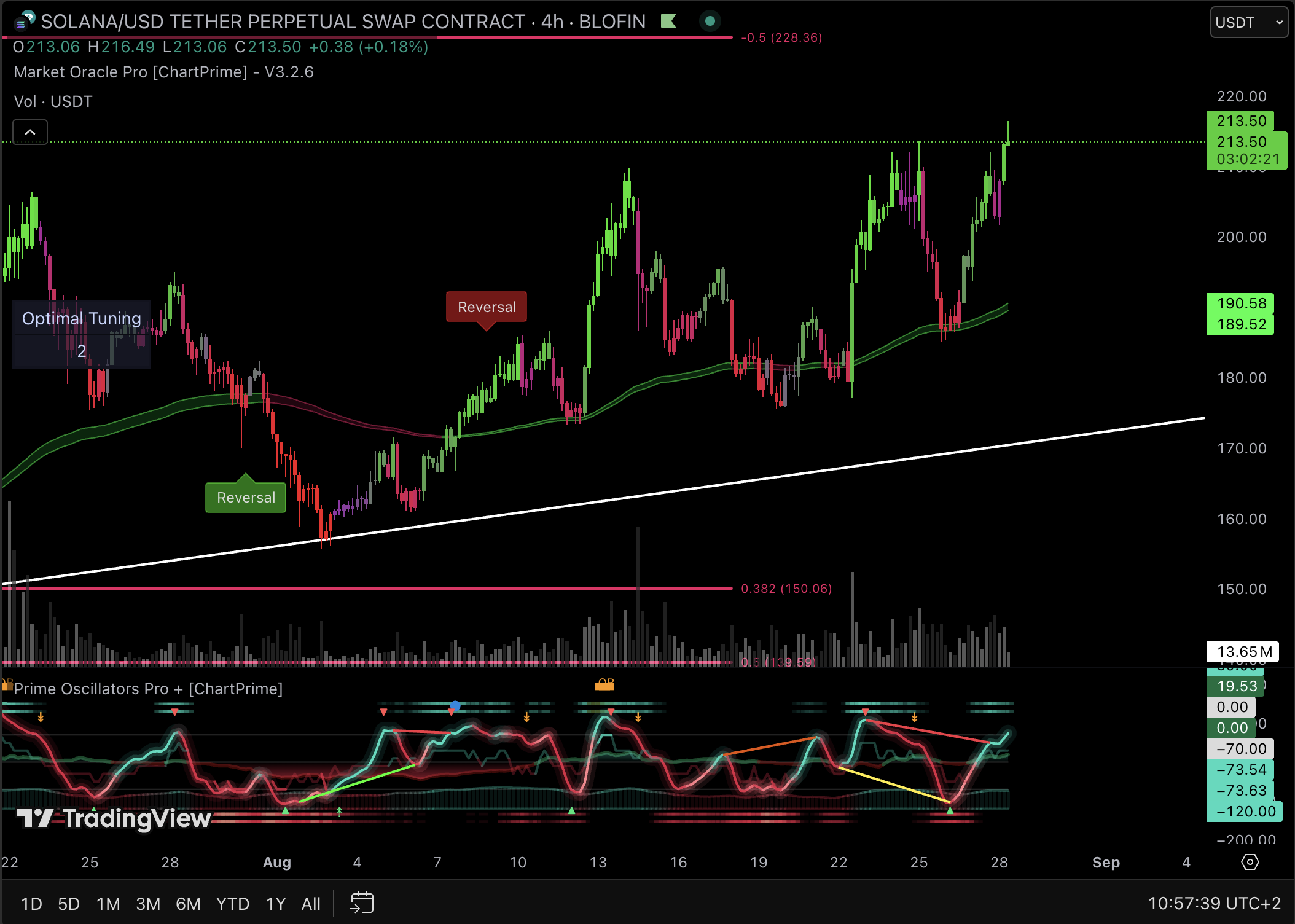 - The Ceiling (Resistance): It's currently trying to break through $216, trying to make its way to the FIB 0.5 around $227/$230.